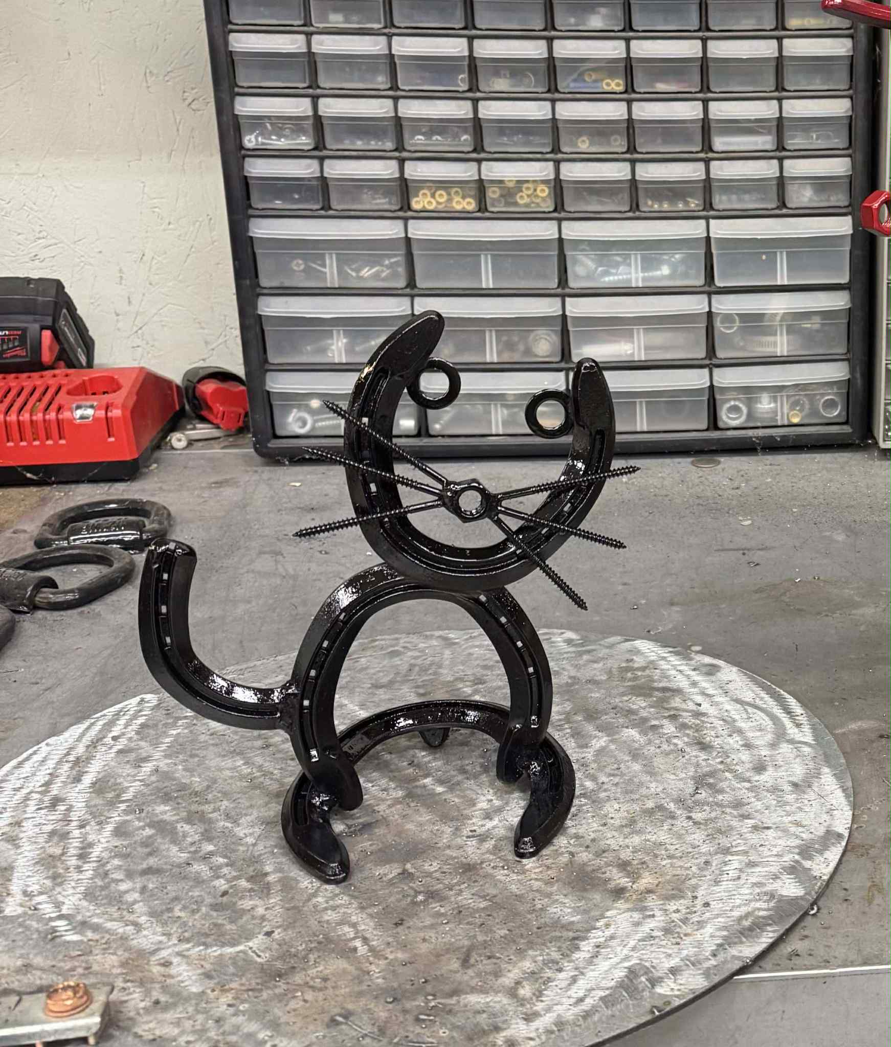 Welded horseshoe cat.