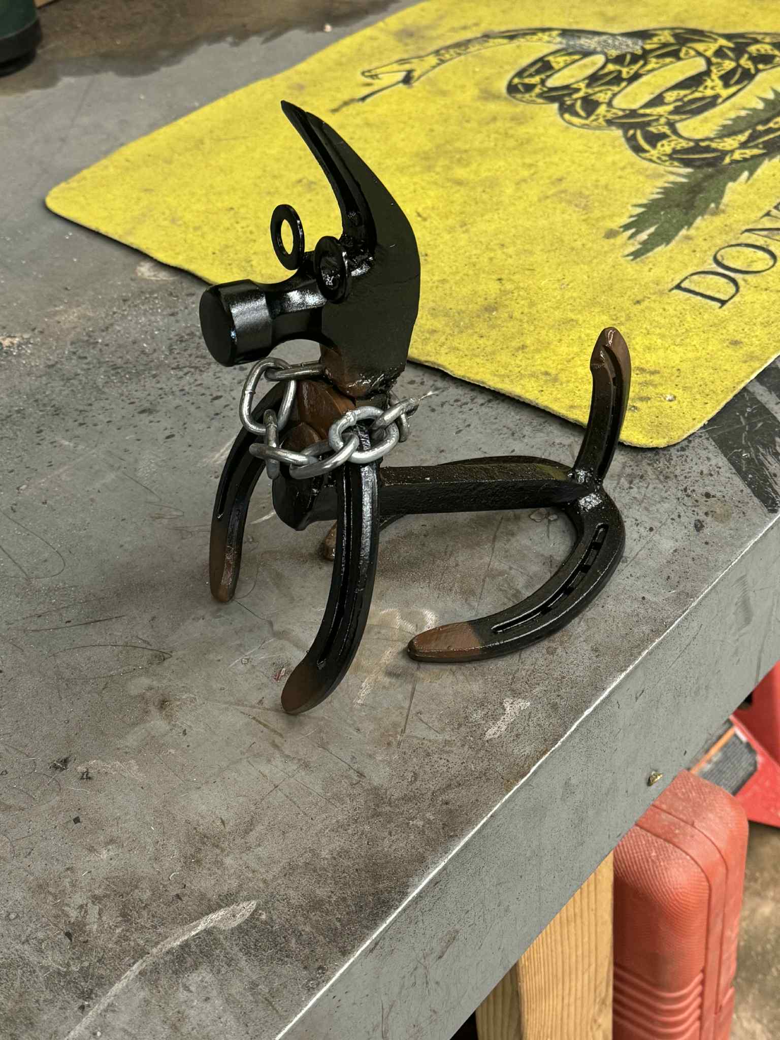 Welded horseshoe and Hammer Dog.